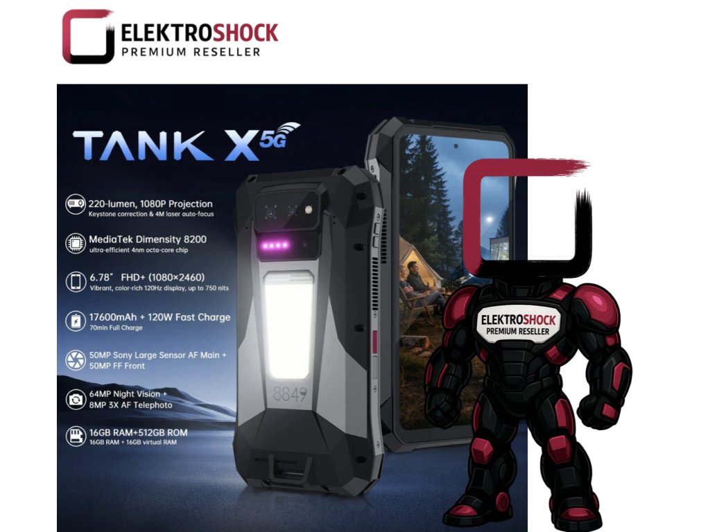 8849 TANK X - Robustes Smartphone mit 5G und 220 Lumen Helligkeit für Projektionen bis zu 1080P
